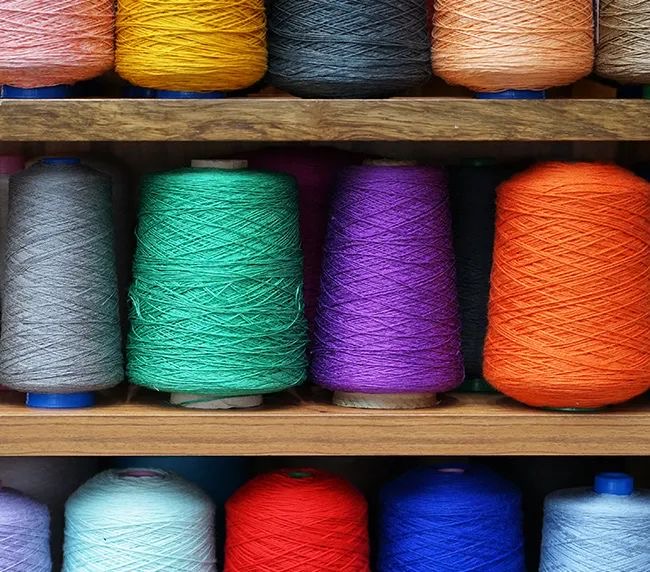 Wide selection of yarns tailored for diverse textile applications.
